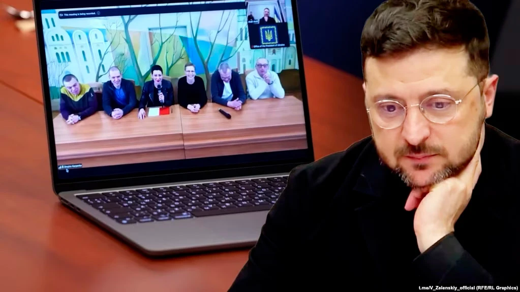 Зяленскі размаўляе з вызваленымі беларускімі палітвязнямі. Калаж: «Радыё Свабода»